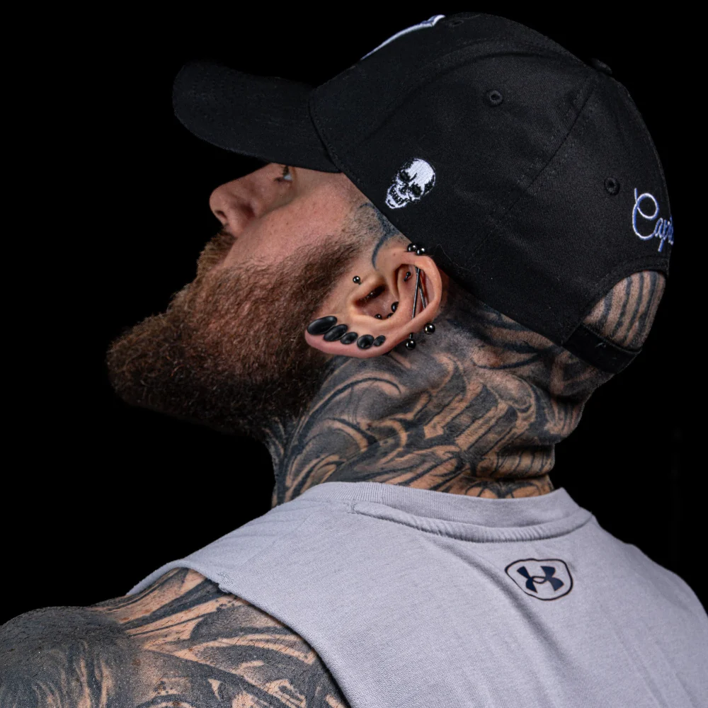 Immortal Horse is a black snapback with a black brim. The front logo is a white Capiche logo. The back side of the snapback is embroidered with “Capiche”. The baseball cap has the immortal horse design.Immortal Horse is part of the Skull collection.