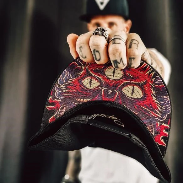 Purple Monster Cat is a black snapback with a black brim. The front logo is a white Capiche logo. The back side of the snapback is embroidered with “Capiche”. On the bottom of the snapback is the purple monster cat design. This was the first ever snapback we've put out there, so this is the real OG!