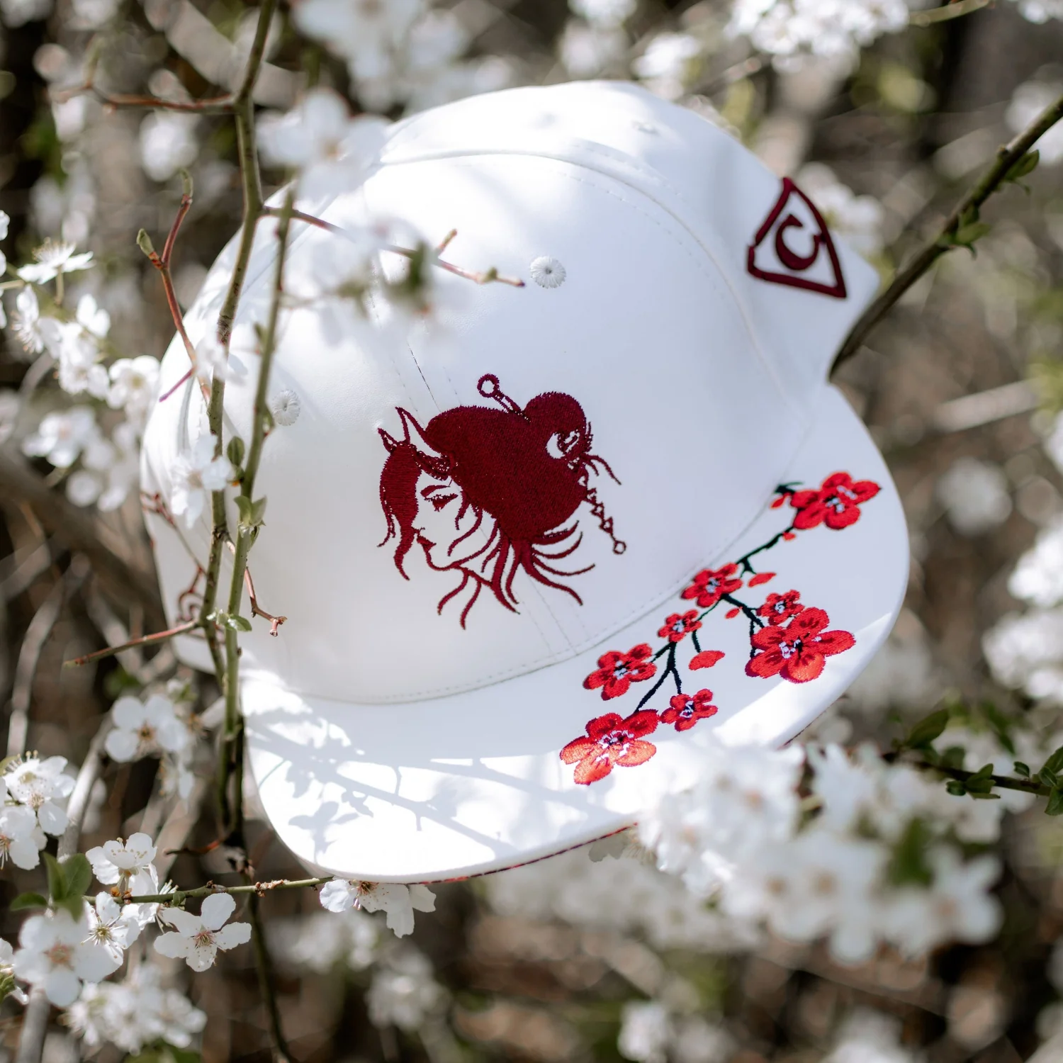 Robot Geisha Snapback - White Artificial Leather/Red Cherry Blossom